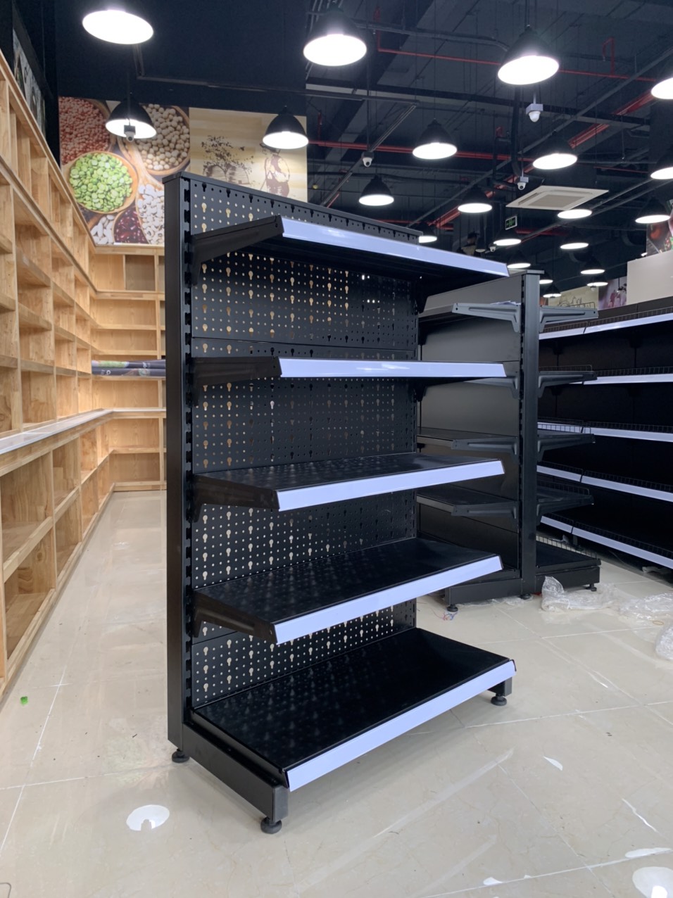 Mẫu kệ siêu thị phổ biến ở các siêu thị Châu Âu với thiết kế lưng tôn đột lỗ; dễ dàng điều chỉnh tầng đợt, lắp ghép tháo rời. Thích hợp với moi quy mô siêu thị quy Có nhiều độ dày và kich thước màu sắc khác nhau. Kệ có thể được lắp mâm đợt hoặc móc treo; Chân trụ chịu lực tốt;