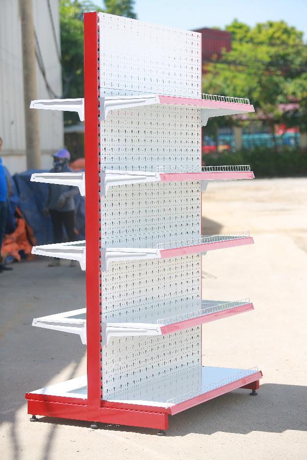 Mẫu kệ siêu thị phổ biến ở các siêu thị Châu Âu với thiết kế lưng tôn đột lỗ; dễ dàng điều chỉnh tầng đợt, lắp ghép tháo rời. Thích hợp với mọi quy mô siêu thị. ; Có nhiều độ dày và kich thước màu sắc khác nhau. Kệ có thể được lắp mâm đợt hoặc móc treo; Chân trụ chịu lực tốt; Kệ được Sản xuất trên dây chuyền tự động, Công nghệ sơn Châu Âu, hóa chất nhập khẩu do Nhật Bản kiểm soát, Chất lượng chất lượng đồng đều, đạt được yêu cầu của các khách hàng khó tính như Nhật Bản, Hàn Quốc,..và đang từng bước xuất khẩu ra thị trường nước ngoài.