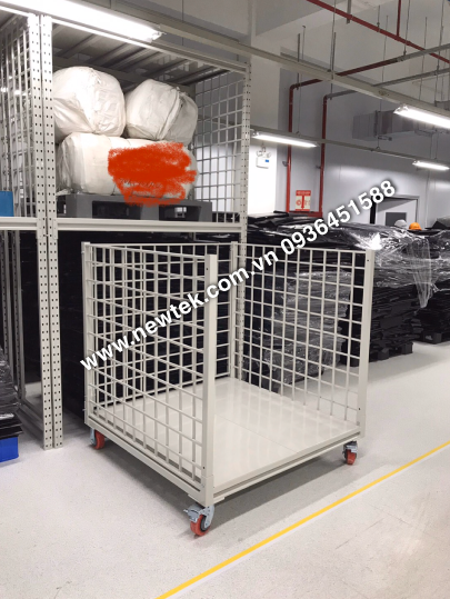 Để các chi tiết cuộn, hàng rời, có bánh xe di chuyển không cần thiết bị nâng hạ, chịu tải 1500kgs. 3 mặt lưới thép, 2 đợt tôn sơn tĩnh điện, 2 bánh xoay, 2 bánh xe khóa cố định. Gấp hoặc không gấp gọn, bao nylon, bìa carton chèn .Để các chi tiết cuộn, hàng rời, có bánh xe di chuyển không cần thiết bị nâng hạ, chịu tải 500kgs