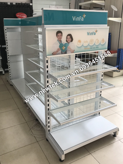 Mẫu kệ siêu thị mini phổ biến ở các siêu thị Mỹ phẩm / Thưc phẩm chức năng / Siêu thị Thuốc